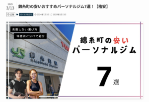 錦糸町おすすめパーソナルジムに掲載されました。